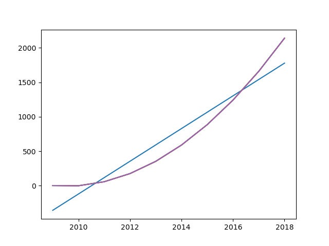 sales = np.array([0.52, 9.36, 33.60, 191.00, 362.00, 571.00, 912.00, 1207.00, 1682.00, 2135.00])